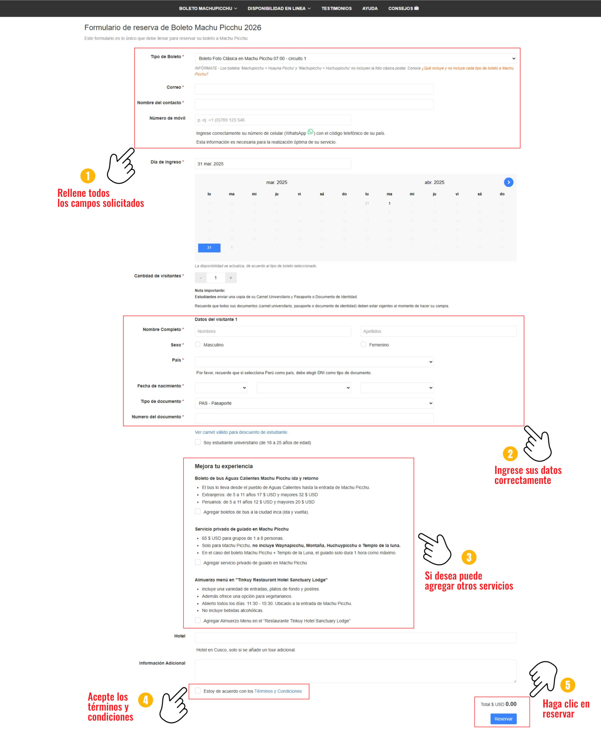 Boletomachupicchu.com é uma maneira rápida e segura de comprar ingressos para Machu Picchu. Além disso, permite que estudantes universitários e menores de idade comprem ingressos com desconto.