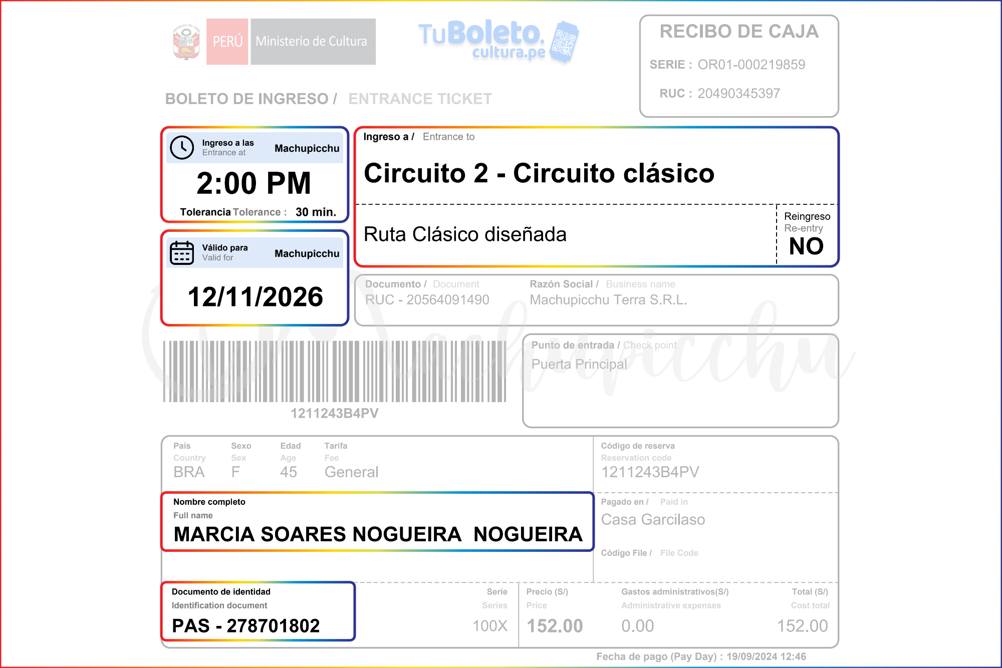 - O ingresso está em formato PDF. Você só precisa imprimi-lo e apresentá-lo no dia da entrada em Machu Picchu.
